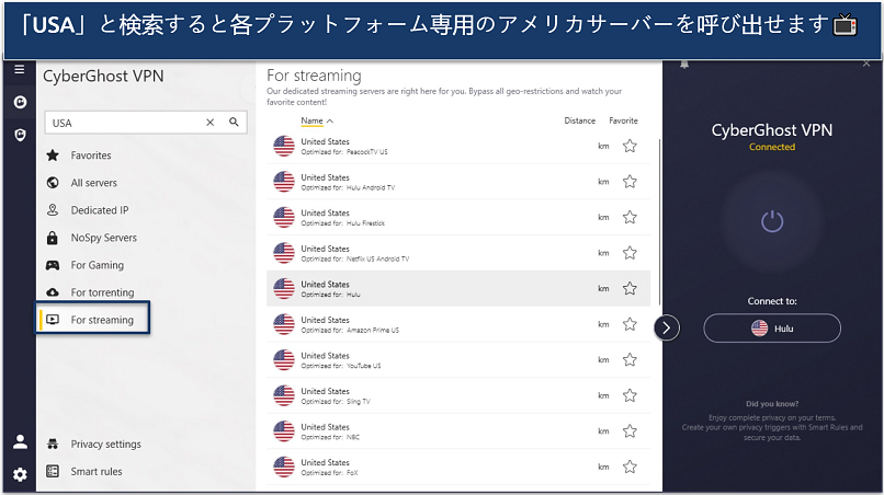 2. CyberGhost:特殊サーバーでアメリカの20以上の動画配信サービスを確実に見られる