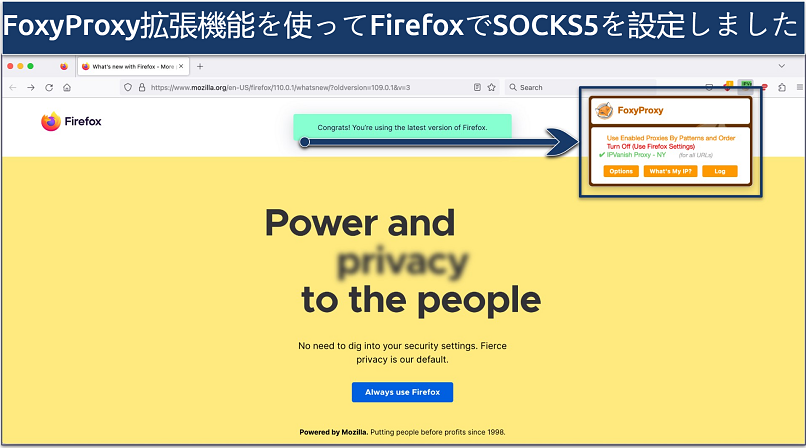 IPVanishの各アカウントでSOCKS5プロキシが使えます。SOCKS5プロキシはVPNほど安全ではないものの、より高速です。私はTorrentの速度を向上するために使っています。FirefoxやTorrentクライアントに設定できるので、いつでも必要なときに高速通信を得られます。とは言え、通信速度が遅いわけではありません。マイアミとシカゴのサーバーでUHD動画を視聴するのに十二分なスピードでした。