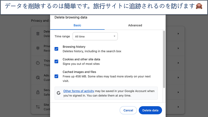 - フライトの元の価格を書き留めます。次に、検索状況をもとに価格が吊り上げられないよう、デジタルフットプリント(Cookie、キャッシュ、閲覧履歴)を削除してください。