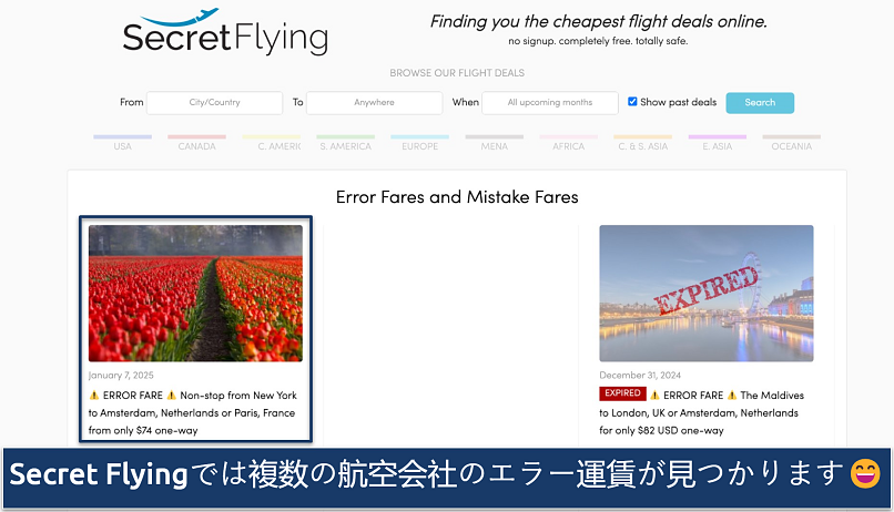 エラー運賃はソーシャルメディアや掲示板、Secret Flyingなどのサイトで見つかります。航空会社が間違ったおかげで航空券を破格で買えることがあるのです。エラー運賃を紹介しているWebページをお気に入りに登録しておくと良いでしょう。