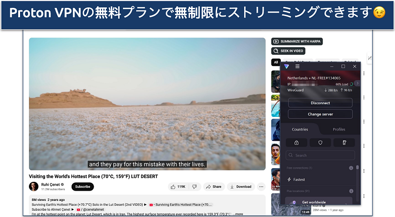 速度テストでは、Proton VPNが利用可能な最速の無料オプションであることがわかりました。近くのサーバーに接続した場合、テストした他のすべての無料VPNの中で最も速度の低下が低かった。これにより、速度を低下させることなくHDとUHDでストリーミングできるようになりました。