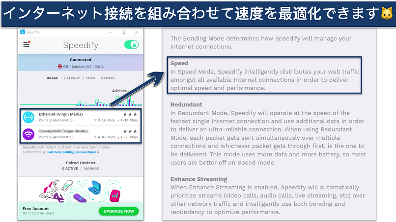 6. Speedify — 接続速度を向上させるボンディングモードが100% 無料