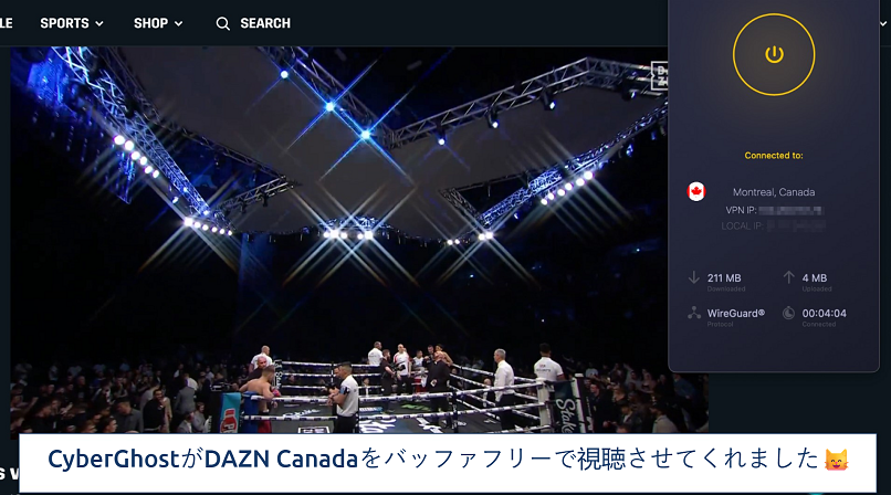 残念ながら、CyberGhostの通常のサーバーはDAZNでは動作しませんでした。イギリスの3つのロケーションをすべて試しましたが、ホームページを読み込むこともできませんでした。しかし、アメリカ、カナダ、ドイツ、イタリアのサーバーをテストしたところ、何の問題もありませんでした。接続は信頼性が高く、高速でした(各地域の近隣サーバーで平均5%の低下)。