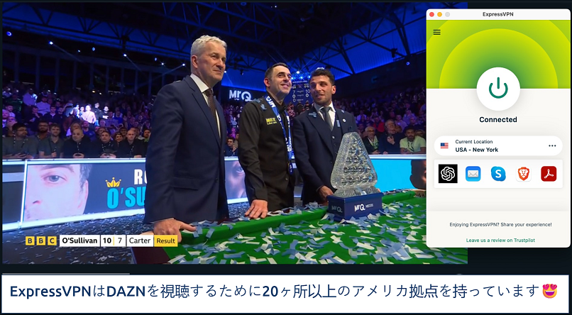 一番の特徴 | 継続的なIPメンテナンスにより、ExpressVPNはDAZNで確実に機能 |